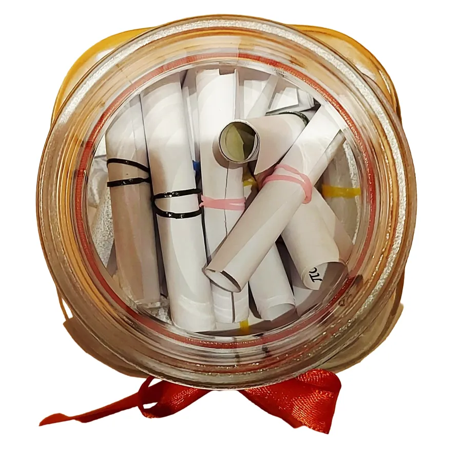 Μέσα του θὰ βρεῖς 50 μικρὰ παπυράκια, μὲ λόγους ἀνασυγκρότησης γιὰ τὸ νέο ἔτος, πνευματικὲς σκέψεις, ἀποφάσεις ζωῆς καὶ ἁπλὲς φράσεις ποὺ μποροῦν νὰ ἀλλάξουν τὴν ἡμέρα σου!