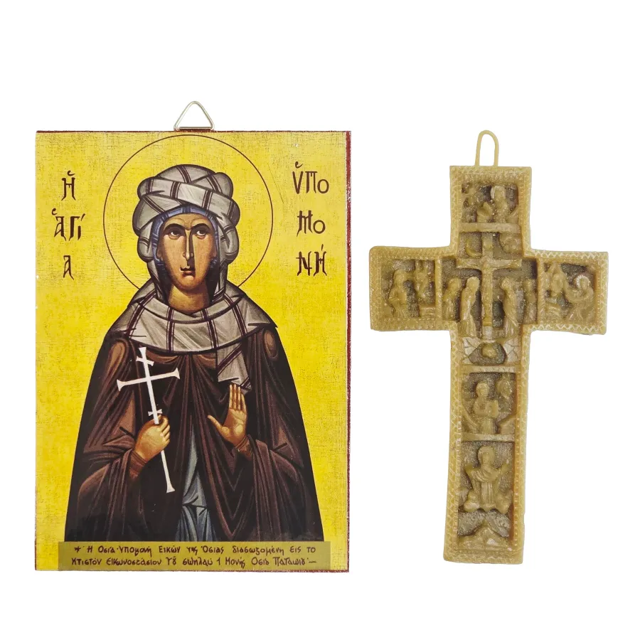 Εἰκόνα Ἁγίας Ὑπομονῆς καὶ κέρινος χειροποίητος σταυρός