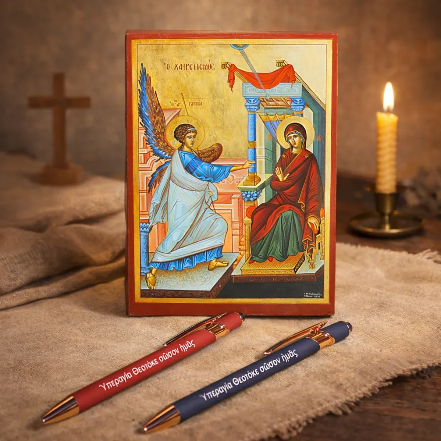 Εικόνα «Ο Ευαγγελισμός της Θεοτόκου» και Στυλό με την ευχή «Ὑπεραγία Θεοτόκε σῶσον ἡμᾶς»