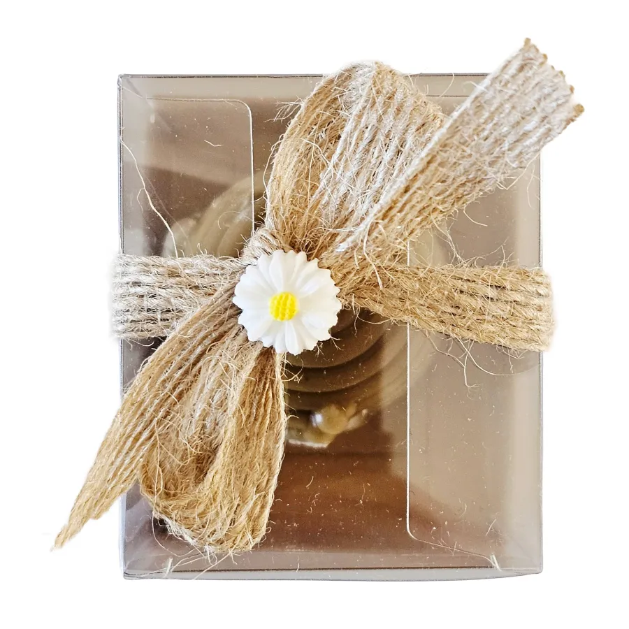 Χειροποίητο κερί από καθαρό μελισσοκέρι, κατασκευασμένο σε καλούπι αυγού και διακοσμημένο με ανάγλυφες μελισσούλες.