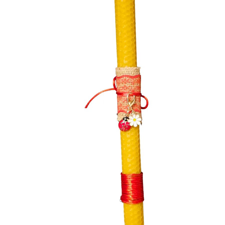 Χειροποίητη πασχαλινή λαμπάδα από φυσική κηρήθρα, διακοσμημένη με πασχαλίτσα. Φυσικό κερί, κομψό και ξεχωριστό δώρο Πάσχα.
