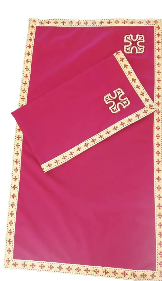 Μακτρα ἱεροῦ, προσεγμένα καὶ καλαίσθητα, μὲ χρυσὴ τρέσσα περιμετρικά, γιὰ κόσμηση καὶ σεμνὴ ἀναβάθμιση τοῦ ἱεροῦ χώρου.
