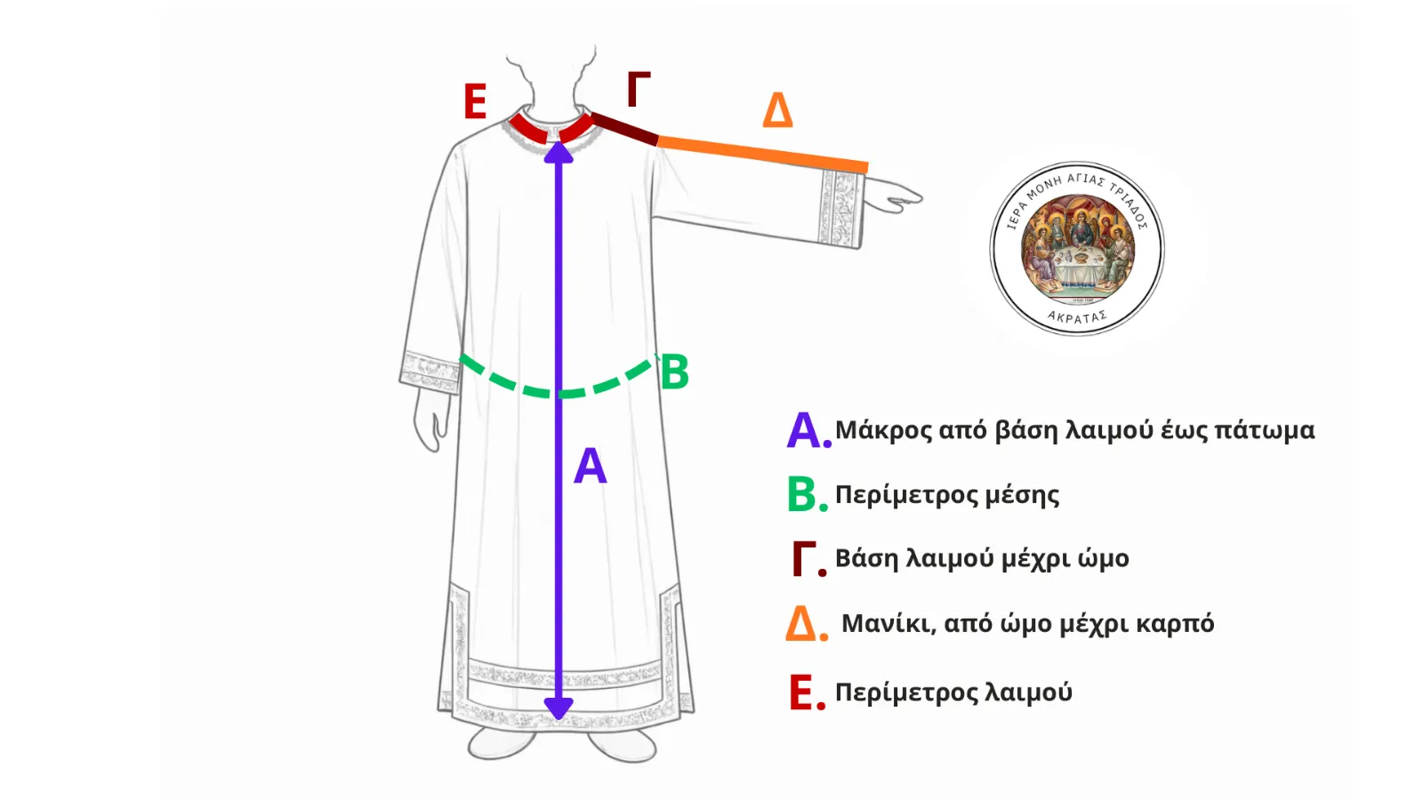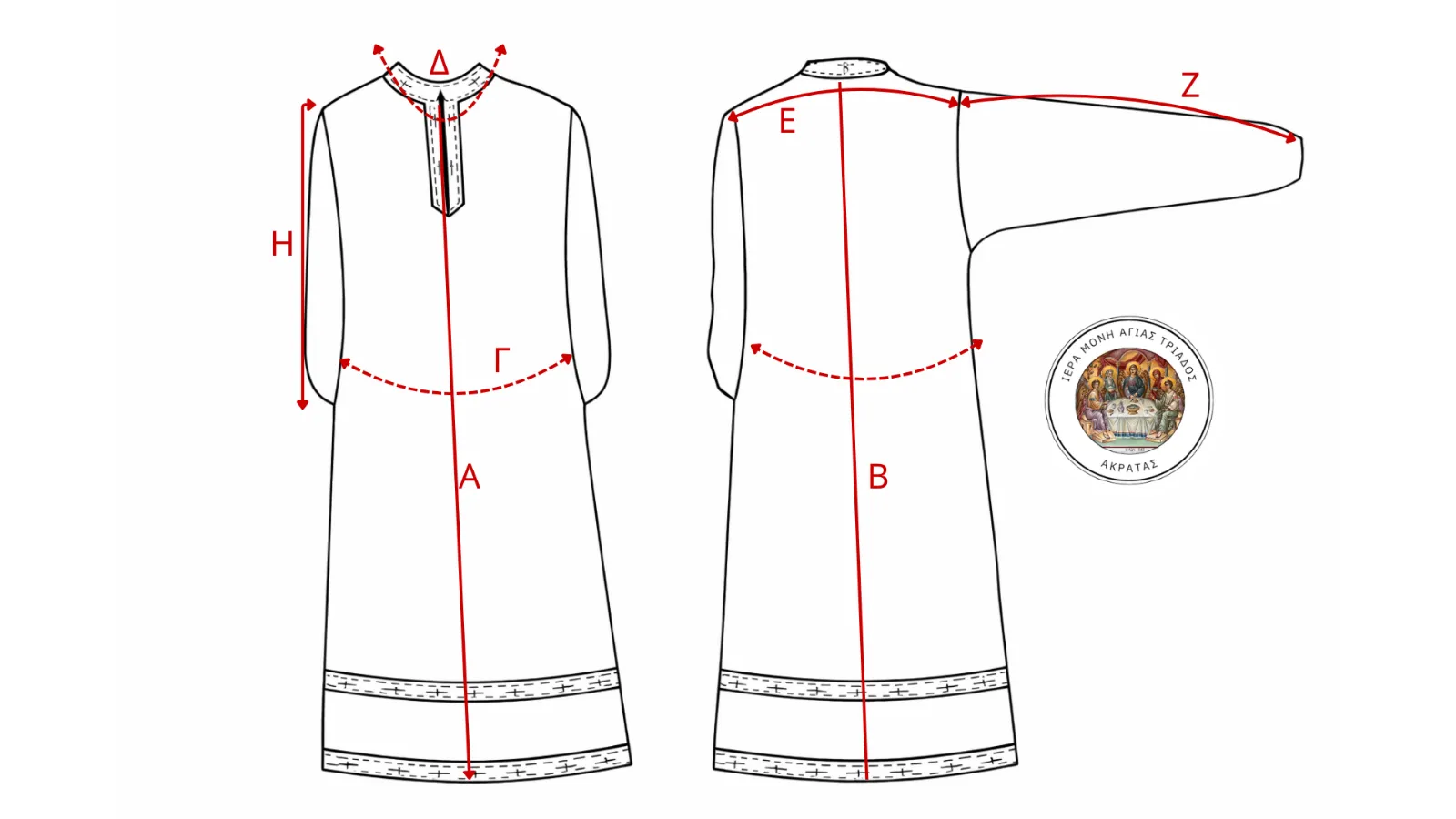 Η διακονική στολή κατασκευάζεται χειροποίητα στο εργαστήριο της Ιεράς Μονής, με ιδιαίτερη φροντίδα και σεβασμό στην εκκλησιαστική παράδοση.