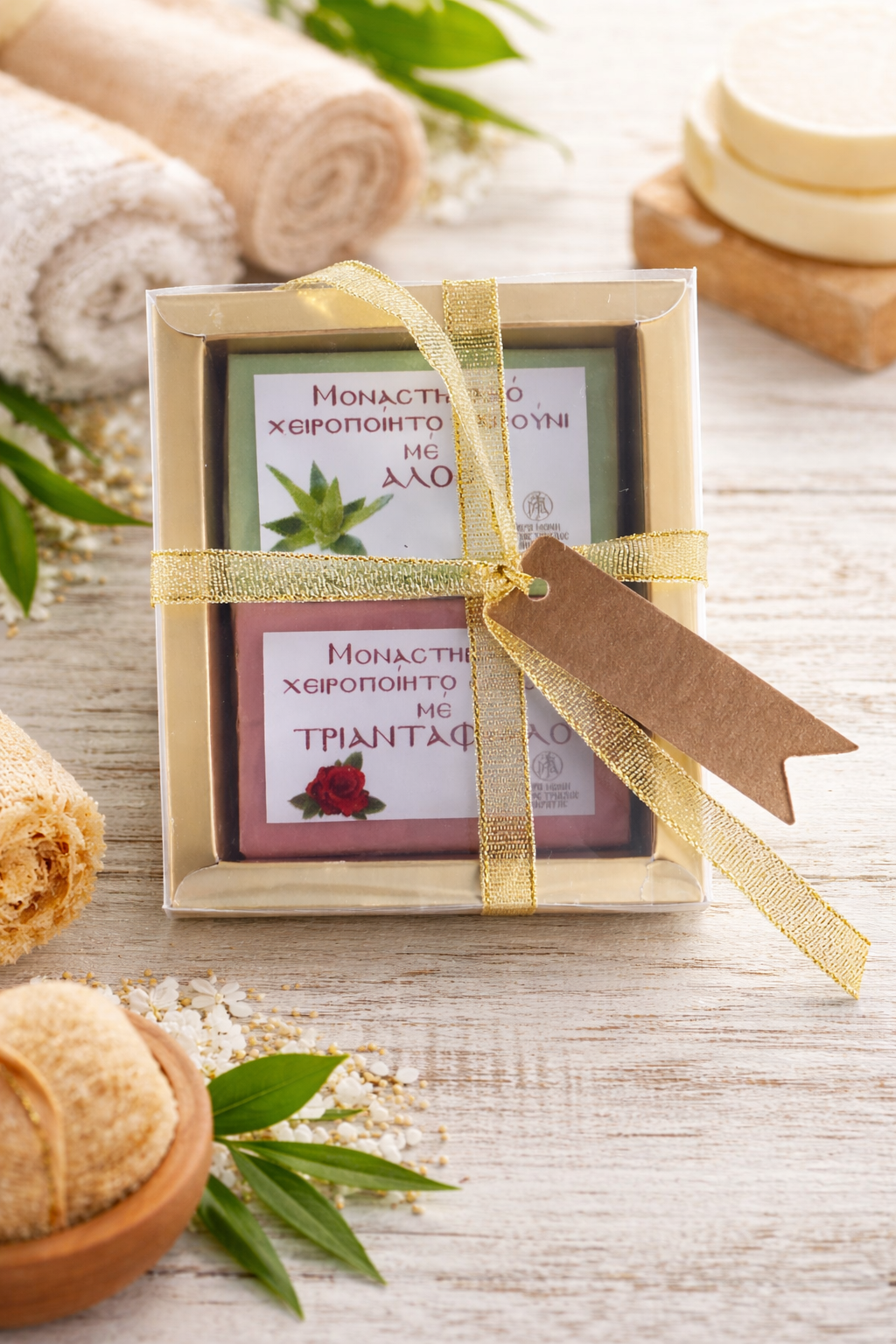 Σετ χειροποίητων σαπουνιών μοναστηριακής παρασκευής, από αγνά υλικά και φυσικά έλαια. Κατάλληλα για καθημερινή καθαριότητα και φροντίδα.